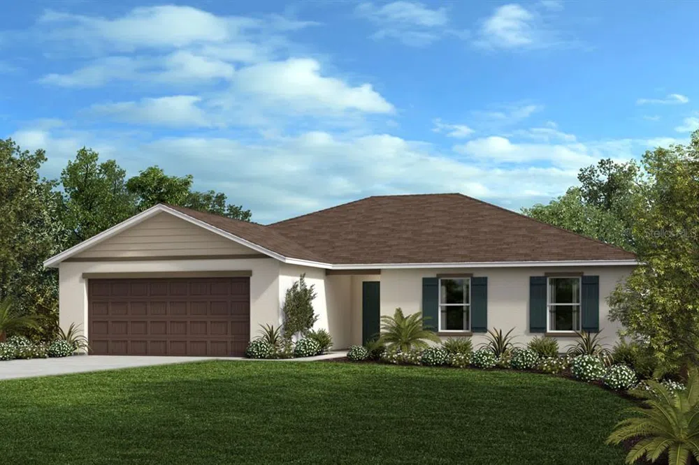 This charming single-story waterfront home will be sure to captivate you the moment you walk in, showcasing volume ceilings plus vinyl plank flooring throughout the wet areas. Featured at the front of the house is a split-bedroom layout, with secondary bedrooms each complete with a sizeable closet. As you continue down the entryway you will encounter the expansive great room and kitchen, all leading you out the covered patio. The kitchen comes equipped with 42-in. cabinets with crown molding, quartz countertops, pantry, an eat-at island, and a stainless-steel Whirlpool® appliance package. The primary bedroom with connecting bath includes an oversized walk-in closet, dual sink vanity with quartz countertops, a linen closet, and a walk-in shower with seat and tile surround.