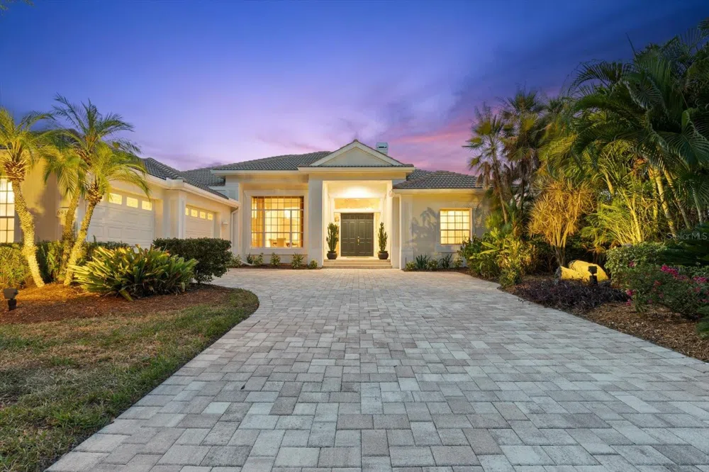 THE HOUSE IS CURRENTLY RENTED AND WILL NOT BE AVAILABLE FOR SHOWINGS FOR. This exquisite four-bedroom home is majestically situated on the first green of the prestigious University Park Country Club golf course. Each evening is transformed by breathtaking sunsets, with mature trees and a protected preserve creating a stunning backdrop for the home's seamless blend of indoor and outdoor living. Poolside entertaining becomes an art form with an elevated spa, a sundeck adorned with sheer waterfalls, and a charming outdoor dining area perfect for joyful gatherings with friends and family. The spacious living room welcomes you with a wet bar, marble-fronted gas fireplace, accent lighting, and 12-foot ceilings. The bright, open kitchen seamlessly flows into the family room and dining area, featuring handsome aquarium windows overlooking the tropical surroundings. A large study with built-ins offers separate access to the veranda and could be converted into a fifth bedroom. The spacious and secluded primary suite includes a charming sitting area with large windows overlooking the private pool. The University Park is nestled within its mature landscapes and expansive natural splendor, as the premier master-planned community in the Sarasota area. Beyond its secure and staffed entrance lies an award-winning, resident-owned enclave, boasting an array of remarkable amenities. Among these are 27 holes of four-star rated golf, eleven illuminated Har-Tru tennis courts, a state-of-the-art fitness center, croquet facilities, and an extensive network of tree-lined avenues, perfect for leisurely strolls or invigorating bike rides. University Park is conveniently located just a short drive from the University Town Center, known for its upscale shopping and dining choices. It's also just a few minutes away from downtown Sarasota and the stunning white sandy beaches. The SRQ airport is just a short drive away.